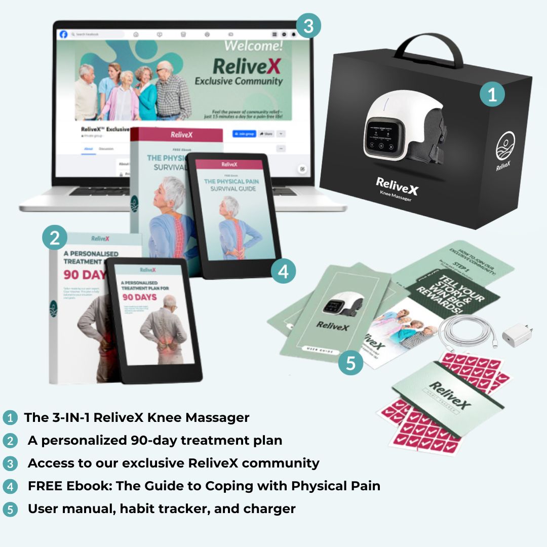 The ReliveX Knee Massager offers a unique combination of targeted massage, heat, and red light therapy that can help relieve and prevent any type of knee pain.