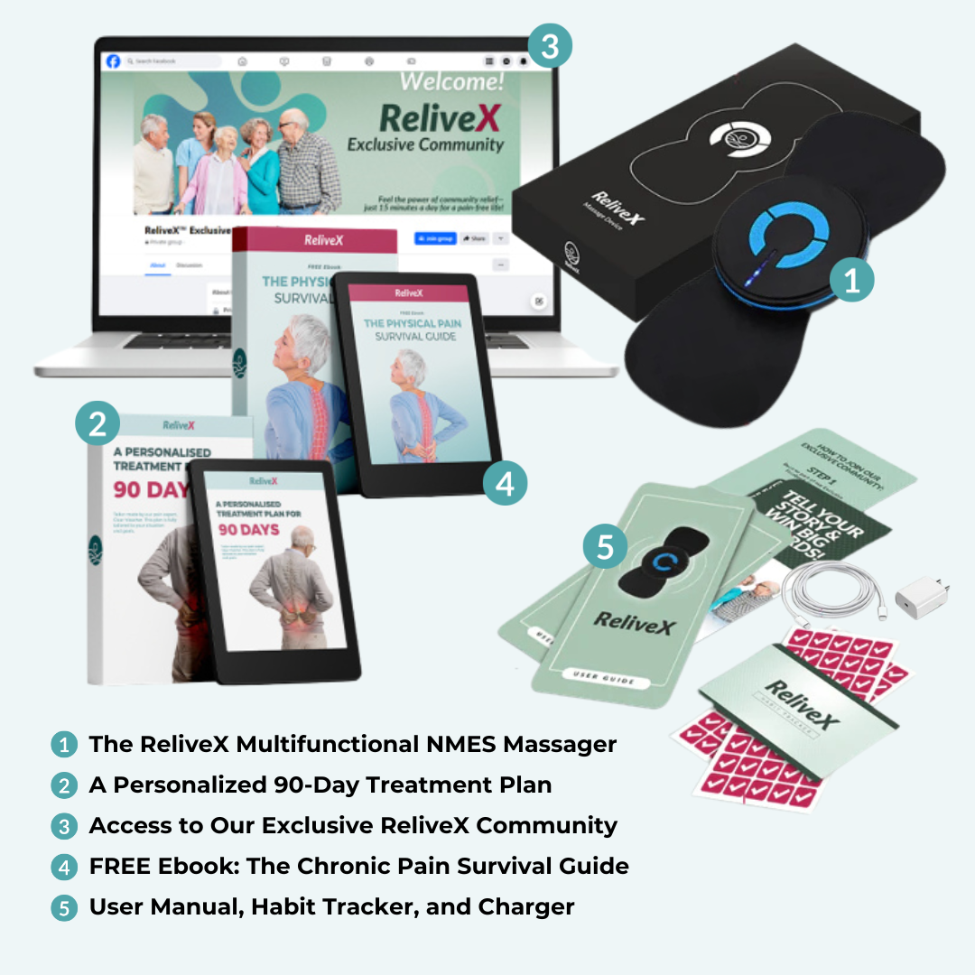 The ReliveX massager addresses the cause , strengthens the muscles, and supports long-term recovery.